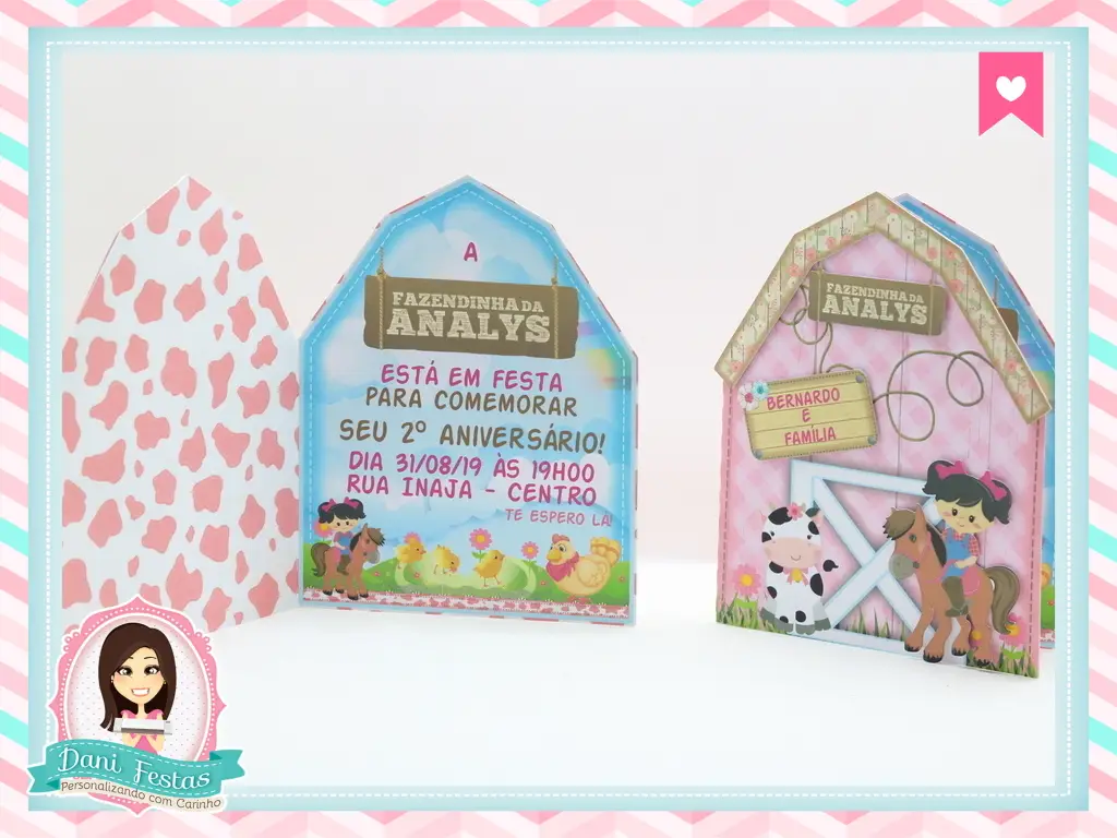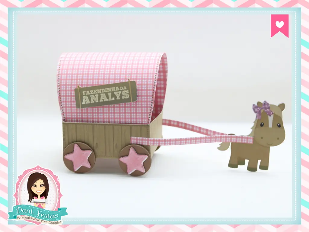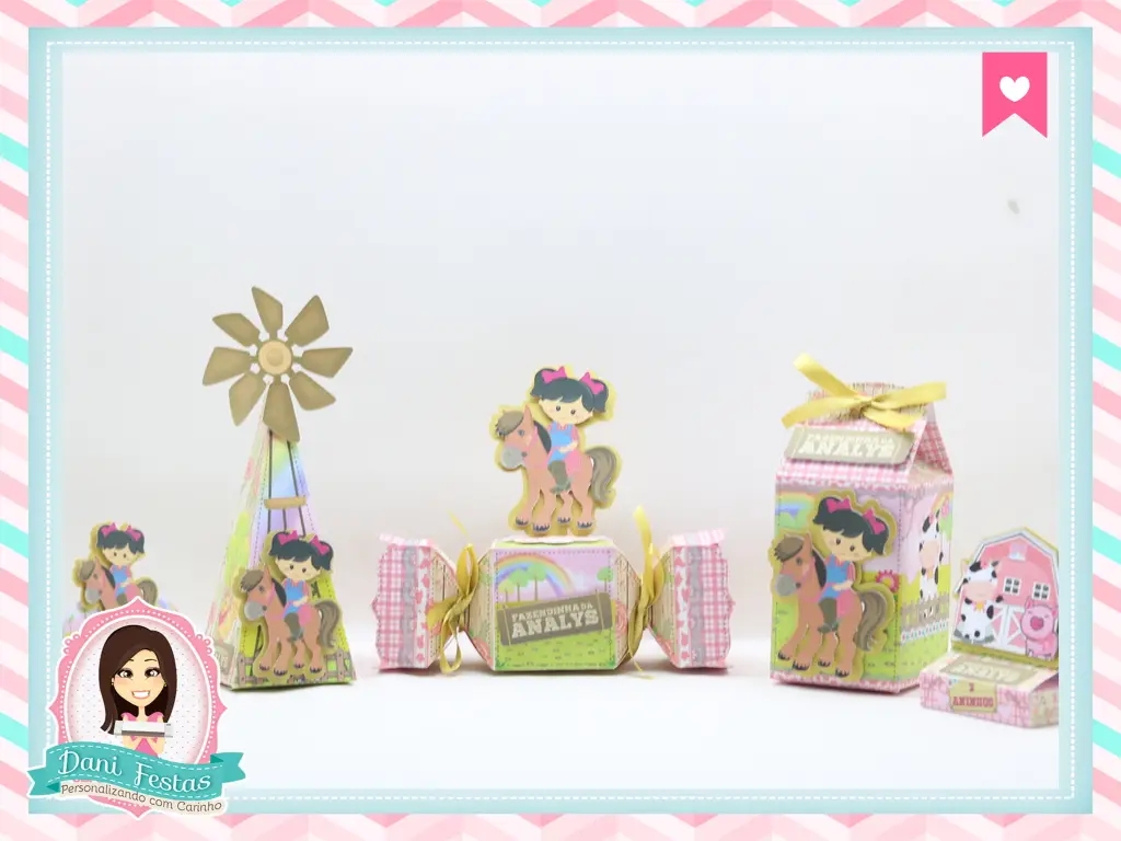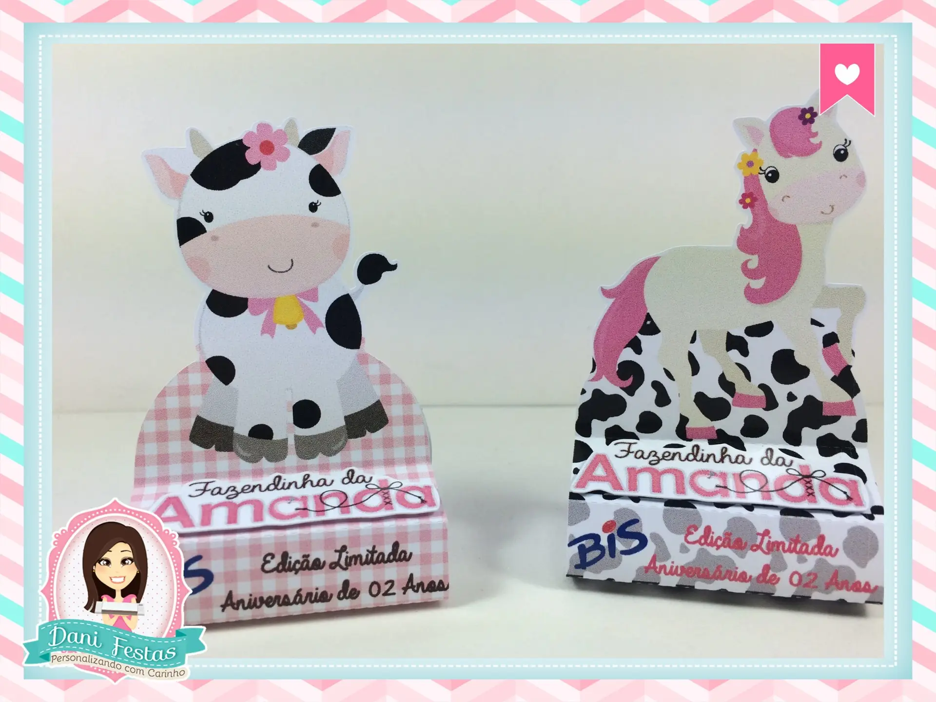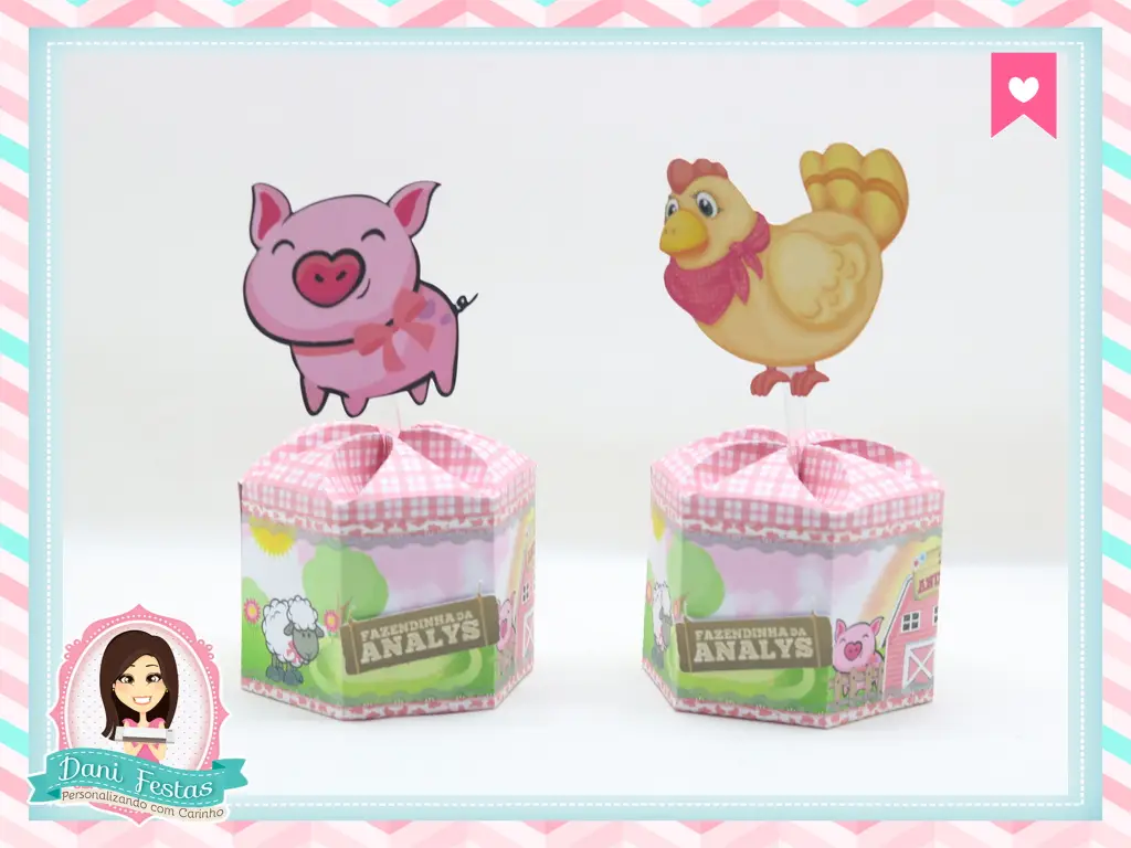 Um tema que está em alta no mercado de decorações de festas é a “Fazendinha”. A proposta estética ressalta o clima bucólico e rural, incorporando o que há de mais gracioso e divertido no campo. Esta temática, por sua vez, foi adaptada para o universo feminino e se transformou em “Fazendinha Rosa”. Com seu colorido todo especial, é possível montar uma decoração animada com diversos produtos tais como: caixa celeiro, caixa galinheiro. Pode ainda complementar com enfeites acessórios, caixa para chocolate bis, caixa pirâmide. Essa Festa Infantil vai ficar linda!