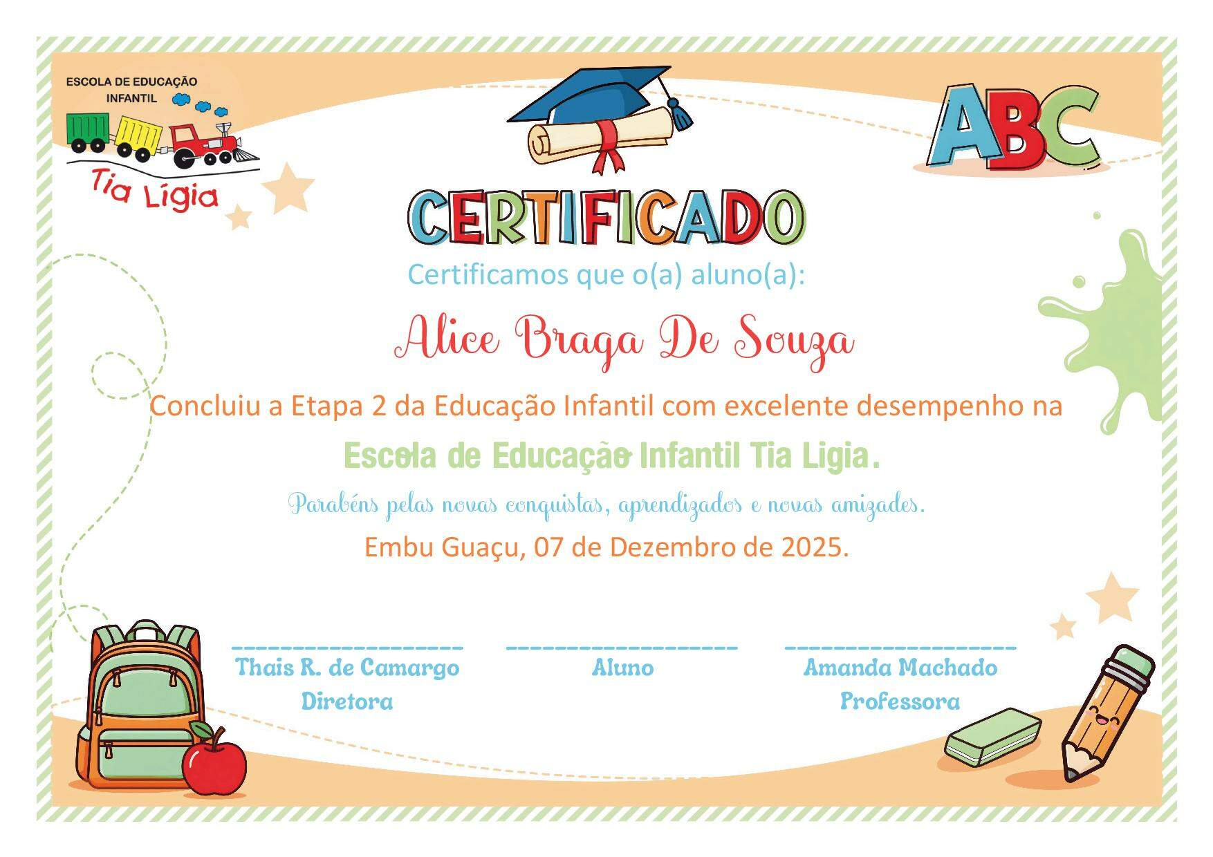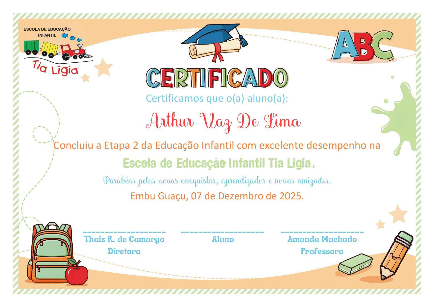 Impresso em papel 180g, o certificado possui excelente acabamento, cores vibrantes e qualidade superior. Portanto, é ideal para cerimônias, entrega em sala de aula, pastas de finalização e registros escolares.