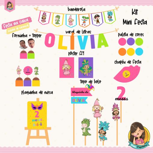 Por isso, esse kit é ideal para quem busca praticidade sem abrir mão de uma decoração alegre e encantadora. Ao mesmo tempo, todos os itens são personalizados com o nome e a idade da criança, garantindo um resultado único. Dessa forma, cada detalhe entra no ritmo da folia e deixa a festa ainda mais especial.