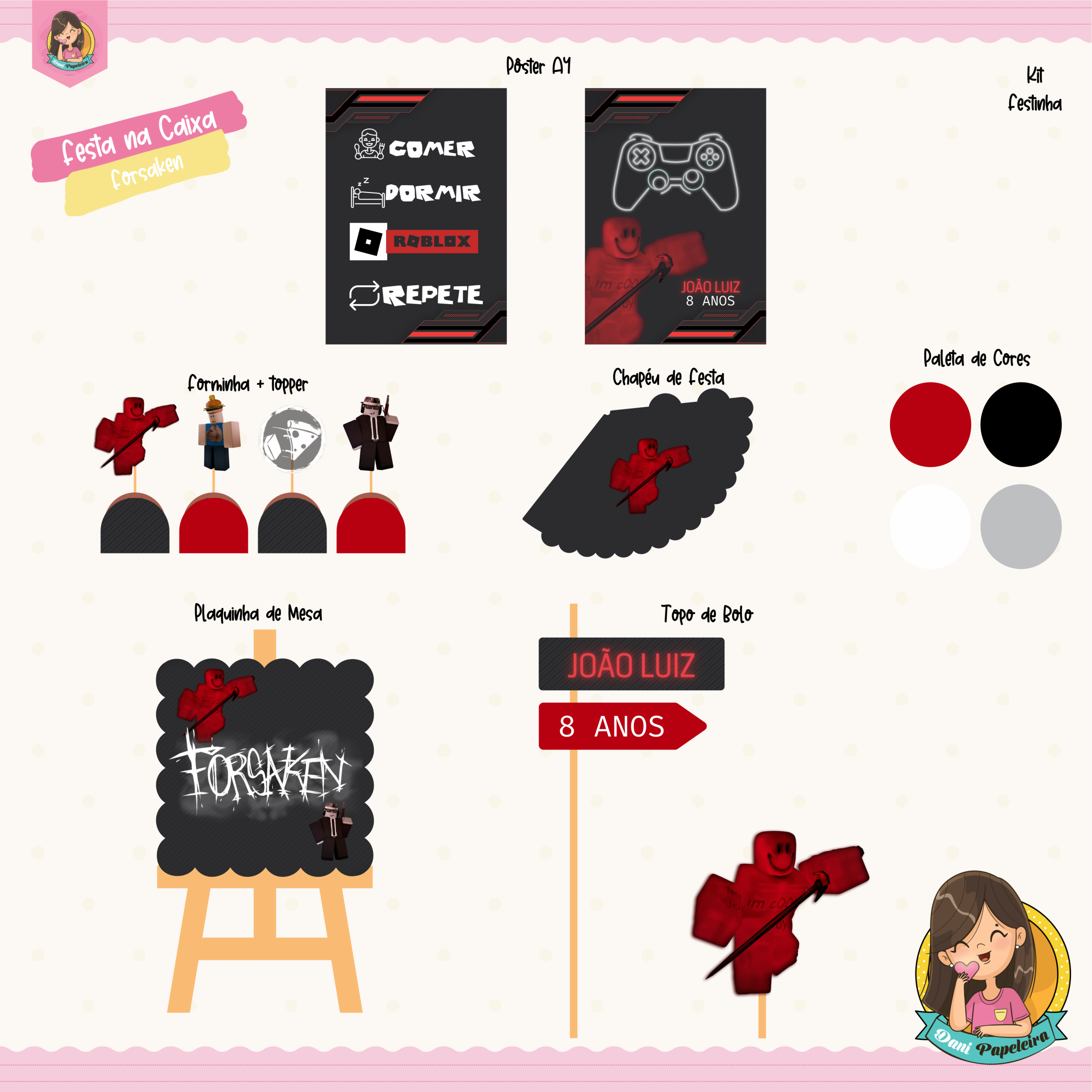 👉 Ou seja, você recebe tudo coordenado no mesmo tema. Dessa forma, a montagem fica simples e prática.