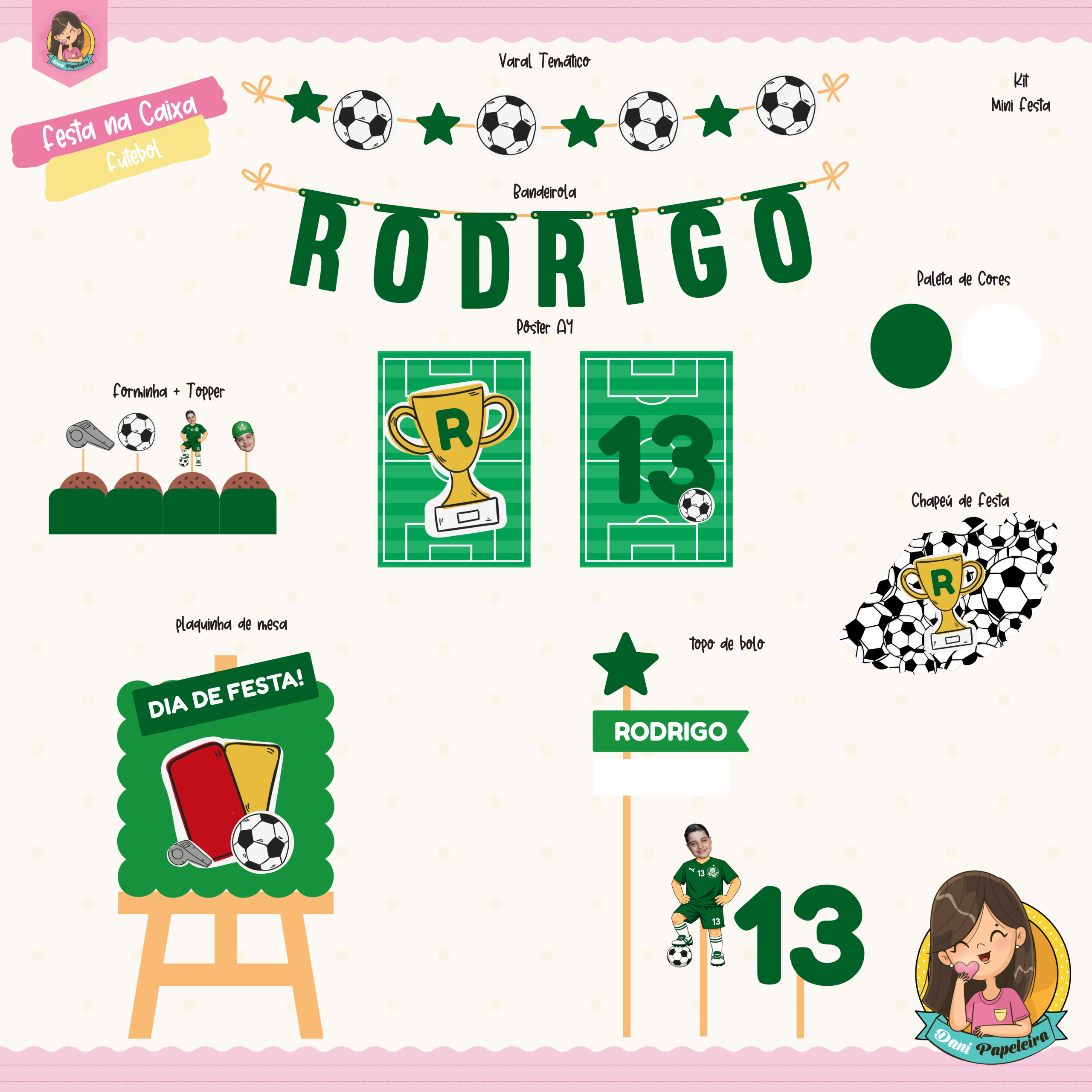 👉 Ou seja, você recebe tudo coordenado no mesmo tema. Dessa forma, a montagem fica simples e prática.