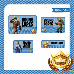 – Kit com etiquetas escolares em 4 tamanhos diferentes em vários temas.