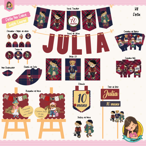 Além disso, o kit é totalmente personalizado, o que significa que você pode incluir o nome, idade e adaptar os tons ao estilo da sua comemoração. Dessa forma, sua festa fica única, charmosa e muito especial.