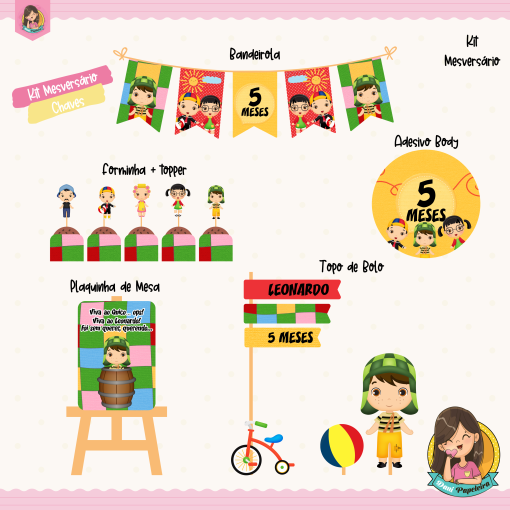 Garanta já o seu Kit Mesversário Chaves 🎉 e transforme cada mês do seu bebê em uma festa cheia de alegria e cor!