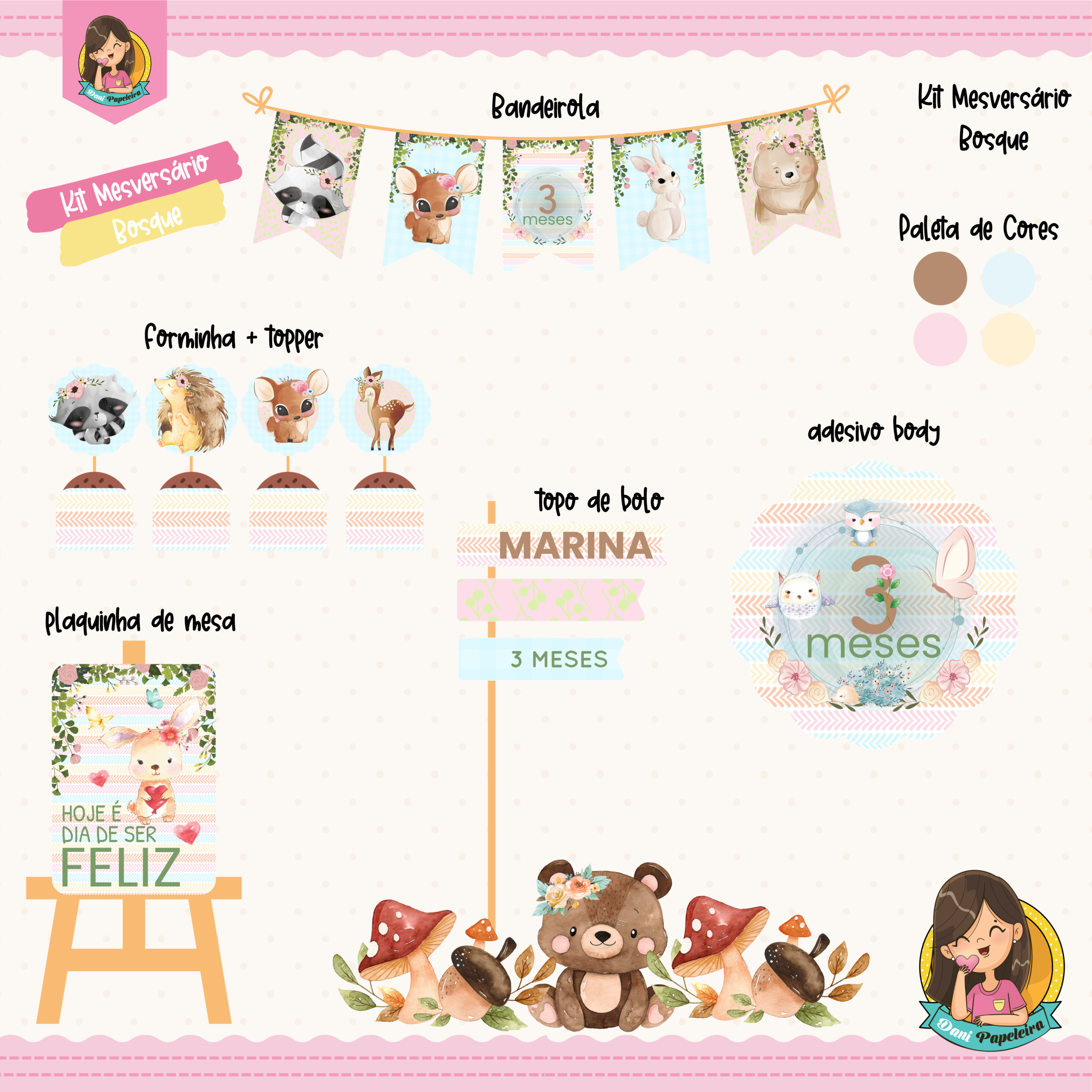 👉 Ou seja, você recebe tudo coordenado no mesmo tema. Dessa forma, a montagem fica simples, prática e rápida.